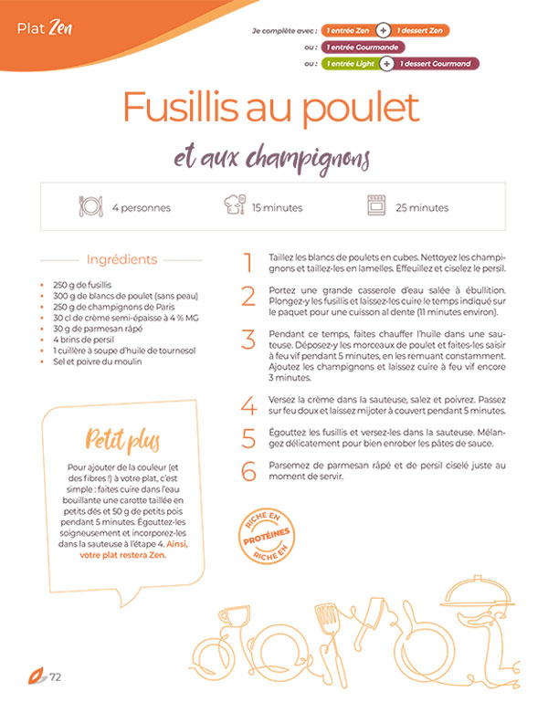 Alors avec «Les pâtes gourmandes, c'est permis », prenez du plaisir à cuisiner facilement des plats de pâtes gourmandes, des proportions bien calibrées et à les savourer sans culpabilité. »